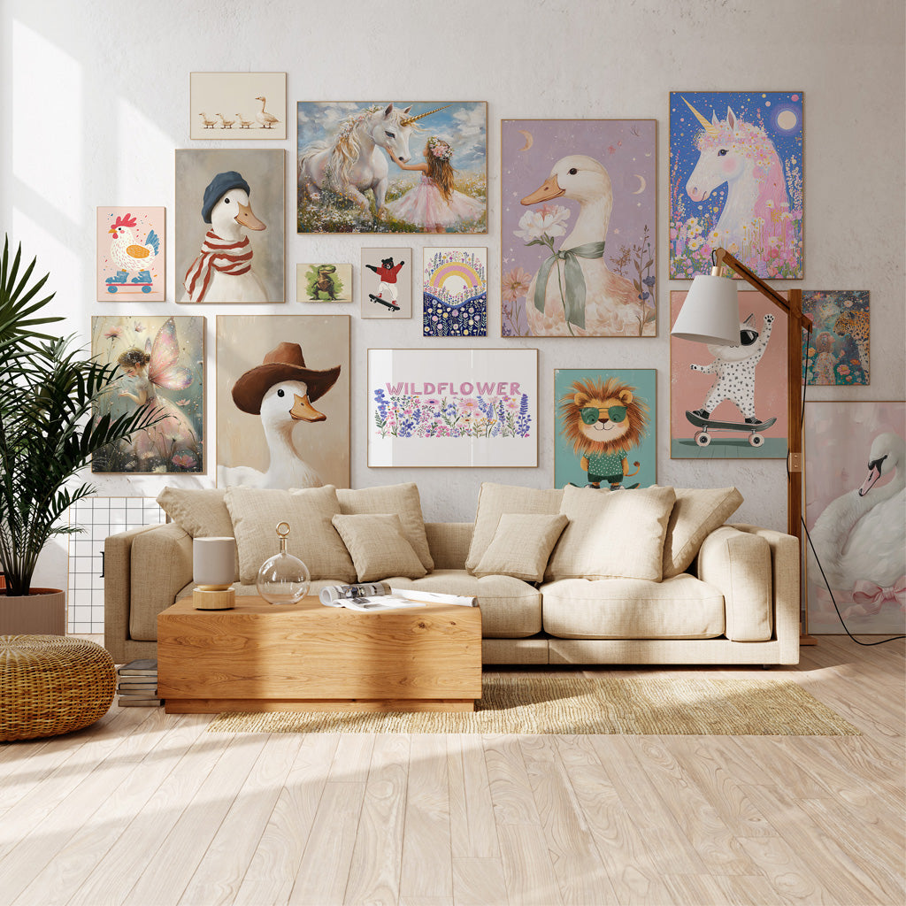 Our wall art collection is a vibrant blend of styles — from earthy Australiana and mystical witchy designs to divine goddess art, empowering prints for women, and playful unicorn themes. Perfect for adding character, charm, and inspiration to your walls.”