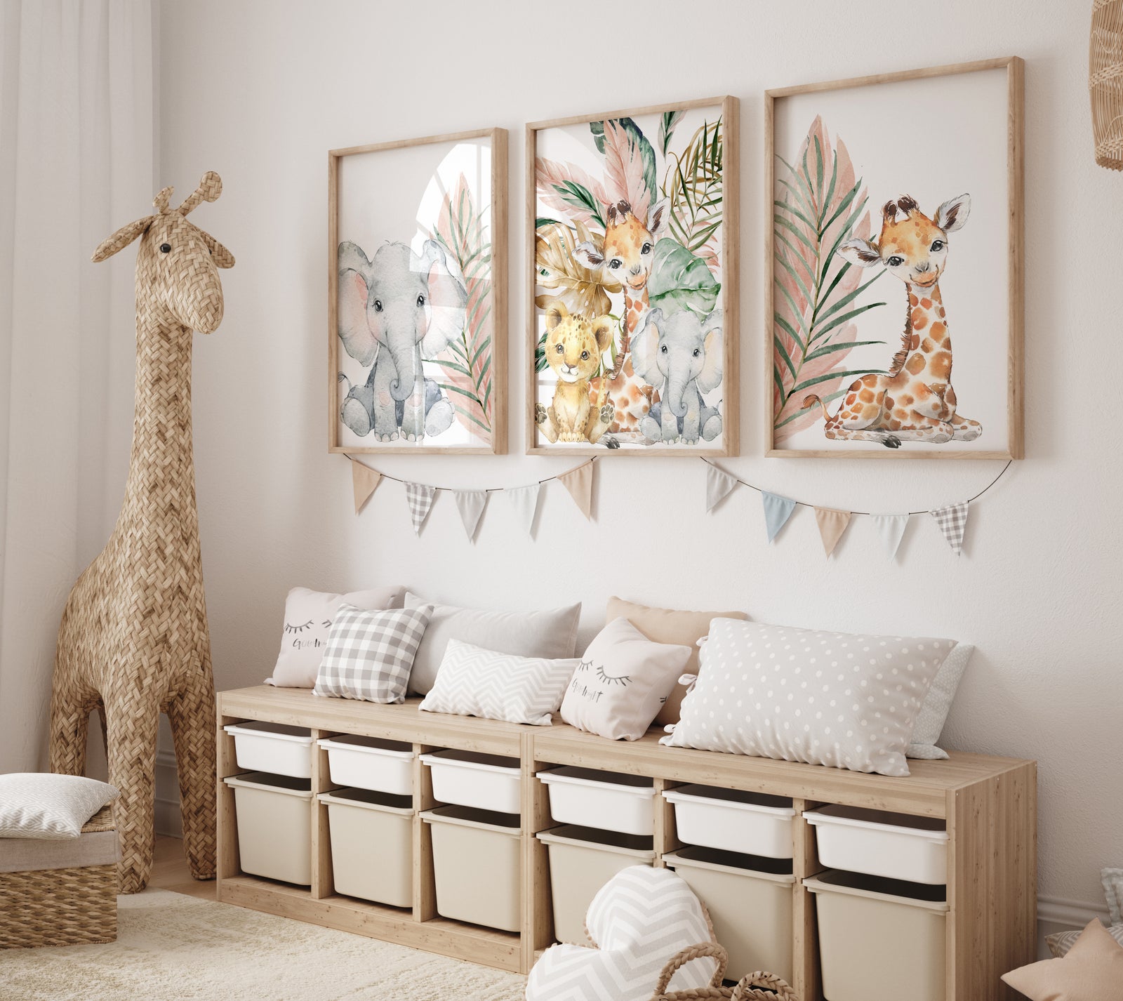 from $39.99Blush Pink Safari Animal Nursery Wall Prints