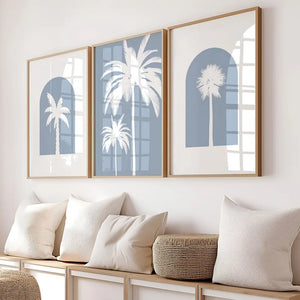 Designed as a cohesive trio, these palm prints can be arranged together for a balanced gallery look or styled separately throughout your home. The cool blue palette pairs easily with white, oak, and neutral interiors, adding a fresh coastal touch without overwhelming the room.