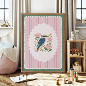 Add a playful touch to your nursery with our Molly Kookaburra Wall Print! Featuring a whimsical kookaburra print, this wall art is perfect for your little girl's room. Let your imagination soar with this fun and quirky addition to your nursery decor.