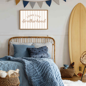 Celebrate the bond of friendship and brotherhood with the "Long Live Brotherhood" typography print. Adorned with stylish stripes, this cheerful wall art brings a vibrant and joyful vibe to any space. Ideal for cherishing memories and spreading happiness, it’s a bright and fun reminder to keep the brotherhood spirit shining daily.
