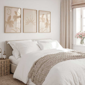 Add a lovely boho beach this set of artwork would be suitable for any living area! Gorgeous on trend caramel latte color.
