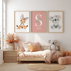 Girls Personalised Nursery Prints – Kangaroo & Koala