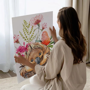 Adorable set of 3 Australian baby animal prints – Echidna, kangaroo & Koala. Perfect nursery wall art for girls. Bright tones, ready to frame.