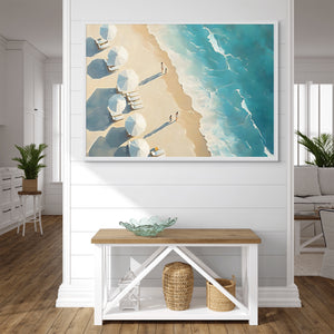 Bring relaxed coastal charm to your space with this white beach umbrella print, inspired by sun-soaked Australian shores. Featuring clean, minimal lines and soft sand tones, this artwork adds a fresh summer vibe to any room.