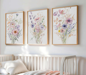 Transform your little girl's room into a dreamy, floral wonderland with our set of three beautiful wall prints. Featuring delicatebouquets of flowers, these prints add a touch of whimsy and charm to any nursery or bedroom. Create a space that inspires her imagination and creativity with these lovely prints.
