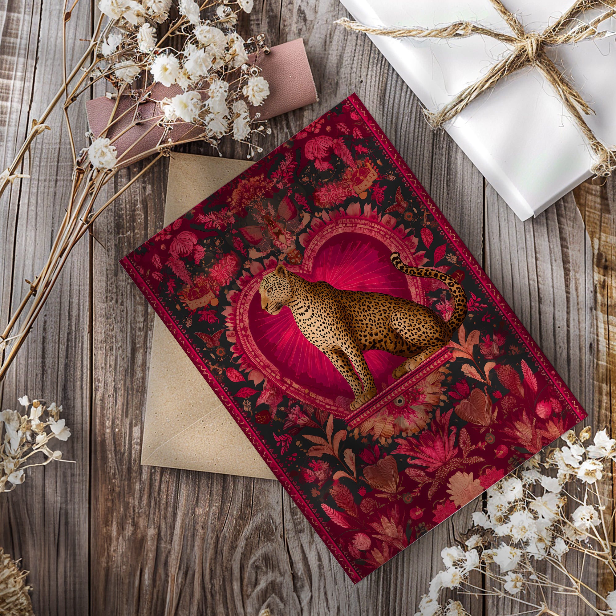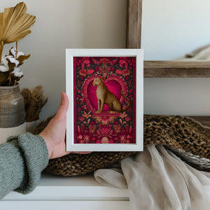 Bring a splash of color and playful style to your space with this Mini Maximalist Leopard ArtPrint. Printed in A5 size, this vibrant wall art showcases a striking leopard design accented with a bright red heart, blending bold maximalist patterns with whimsical charm. Ideal for bedrooms, nurseries, home offices, or as part of a curated gallery wall, this mini print adds personality and energy to any room.
