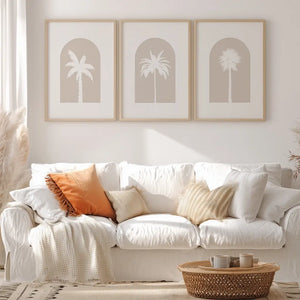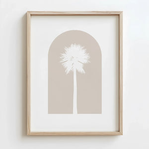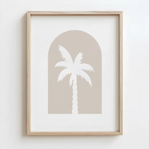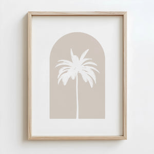 Bring balance and modern elegance to your space with this Minimal Palm Silhouette Print, set within a soft arch shape and available in a range of custom background colours. The simple white palm tree design offers a clean, coastal feel — ideal for neutral, boho, or contemporary interiors.