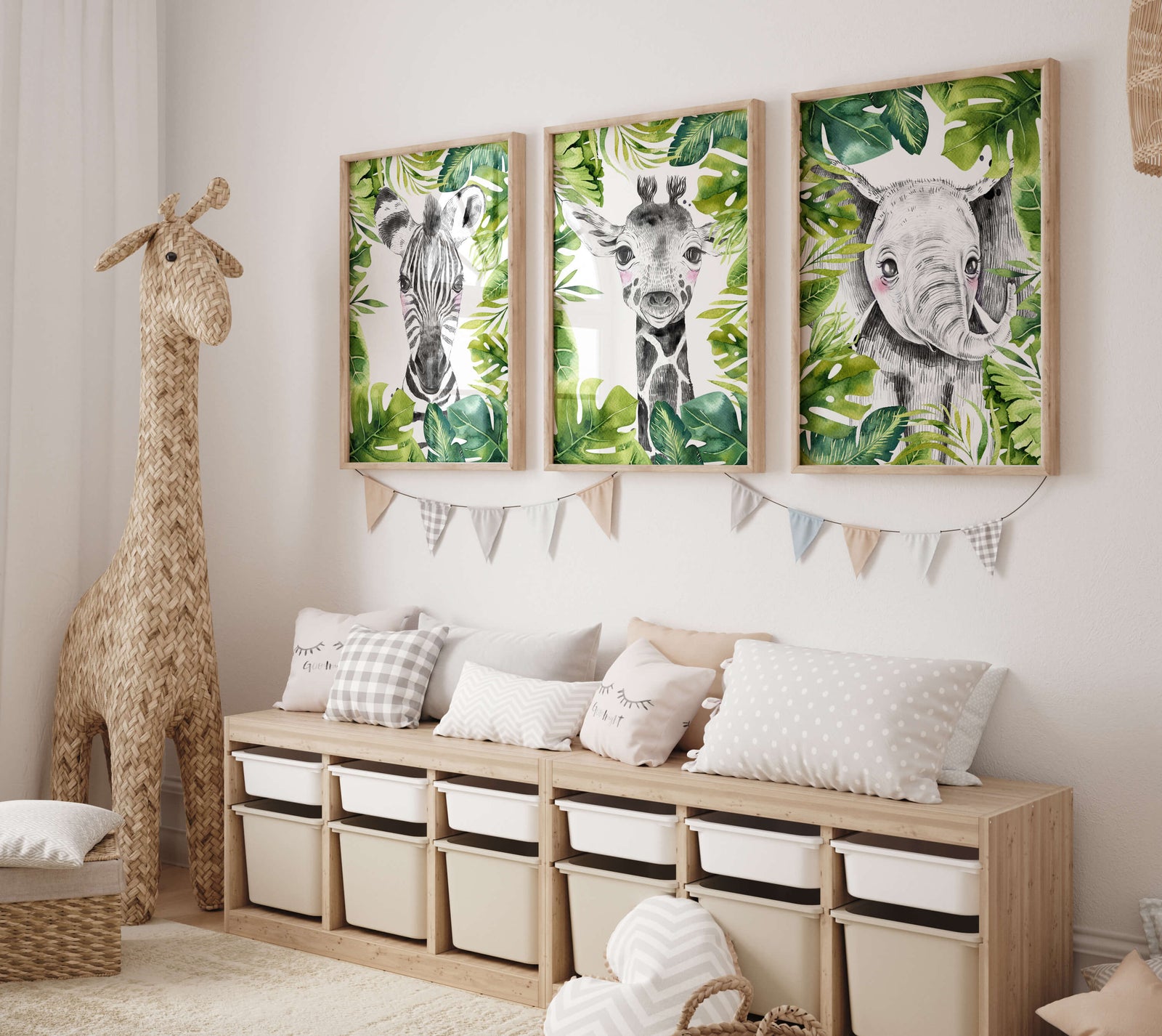 Explore our safari and jungle nursery wall art collection, perfect for boys' bedrooms. Adorable animal prints to create a fun, nature-inspired space.