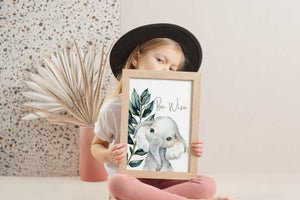 A set of three safari Animal nursery wall prints featuring our beautiful Cub elephant and girrafe Baby's with forest green foliage.