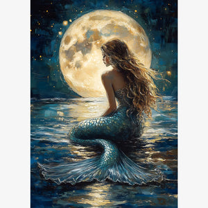Bring celestial magic into your home with this enchanting Moonlit Mermaid Wall Art Print. Featuring a serene mermaid gazing at a glowing full moon, this richly textured artwork is perfect for dreamy bedrooms, moody bathrooms, or boho gallery walls.