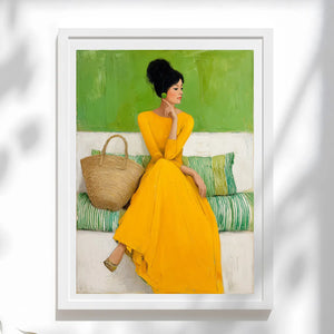 Add a bold pop of color to your space with this vibrant portrait of a woman in a yellow dress. A contemporary fine art print perfect for modern, eclectic interiors. Bring bold elegance to your walls with this vibrant portrait of a woman in a yellow dress. Radiating color and confidence, this contemporary fine art print adds instant impact to any space.